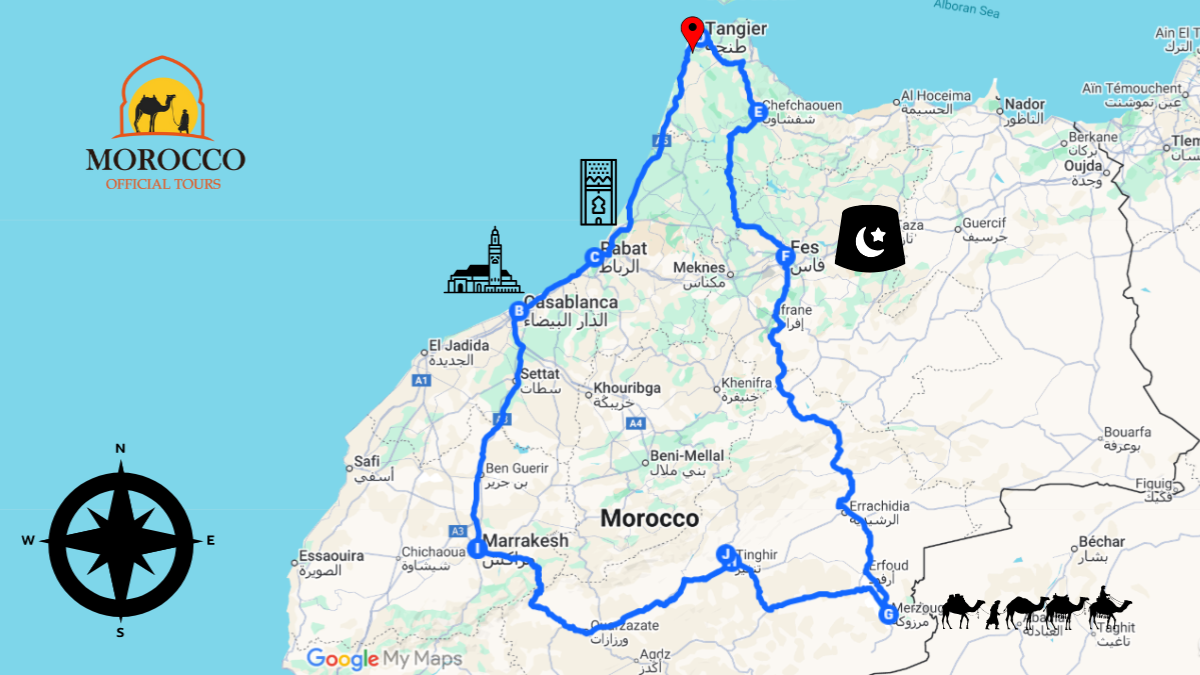 10 Day Morocco Itinerary Book an unforgettable 10 Days tour from Casablanca with Morocco Official Tours and experience the very best of the country This carefully crafted 10 Day Morocco Itinerary takes you on a journey through Morocco most iconic destinations During this immersive 10 day Morocco tour you will explore the breathtaking Sahara Desert discover the vibrant cultures of Marrakech and Fes wander through the turquoise-blue streets of Chefchaouen and visit the lively city of Tangier before returning to Casablanca.