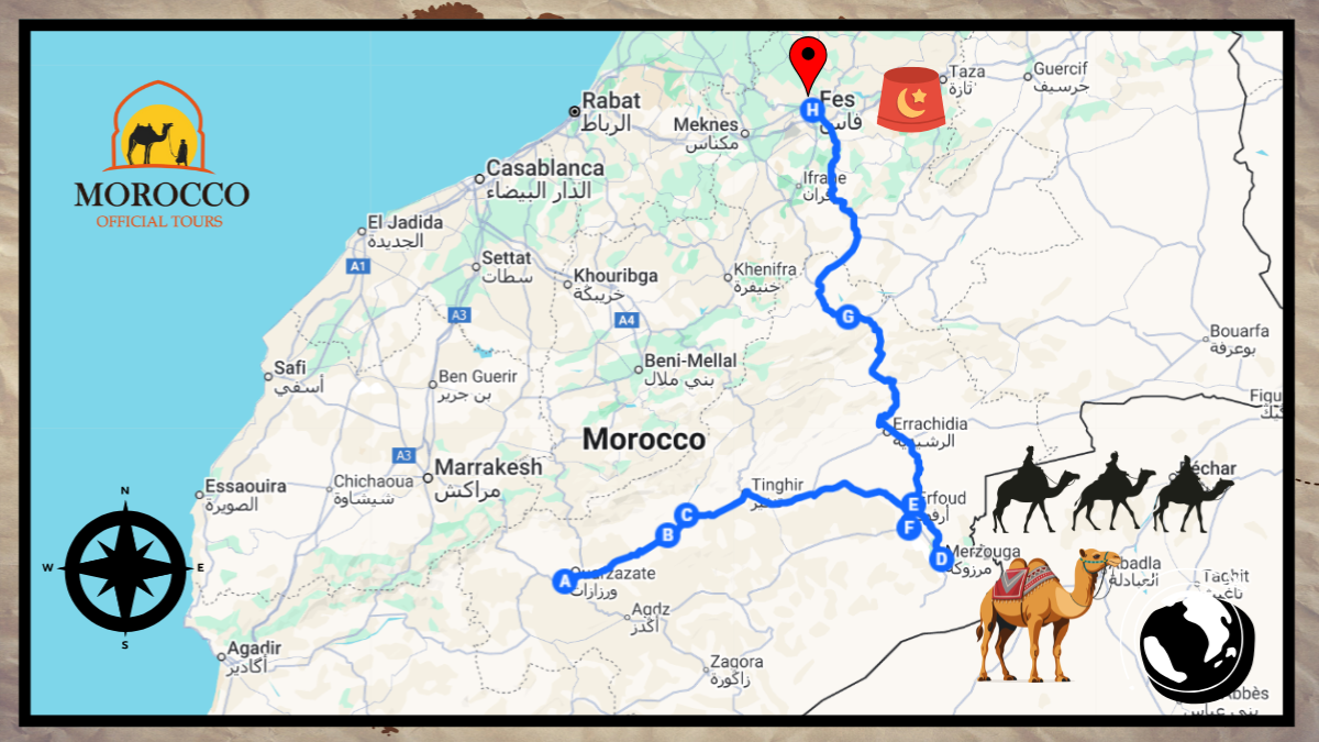 3 Days tour from Ouarzazate to Fes is a great choice for travelers who want to discover the Sahara Desert and Morocco changing landscapes in a short time Beginning in Ouarzazate this 3 Days tour Ouarzazate Fes takes you through the Valley of Roses impressive kasbahs and the dramatic Todgha Gorges with stops in traditional Berber villages along the way.