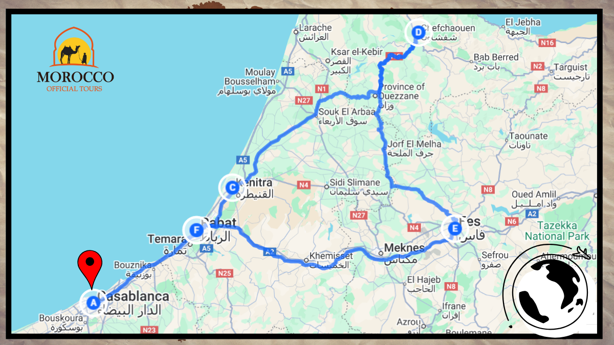Start your 4 Days Morocco Tour from Casablanca by heading north through Rabat Morocco elegant capital and then the scenic Rif Mountains Arrive in Chefchaouen the enchanting Blue City and wander its vibrant streets before settling in a traditional riad for the night.