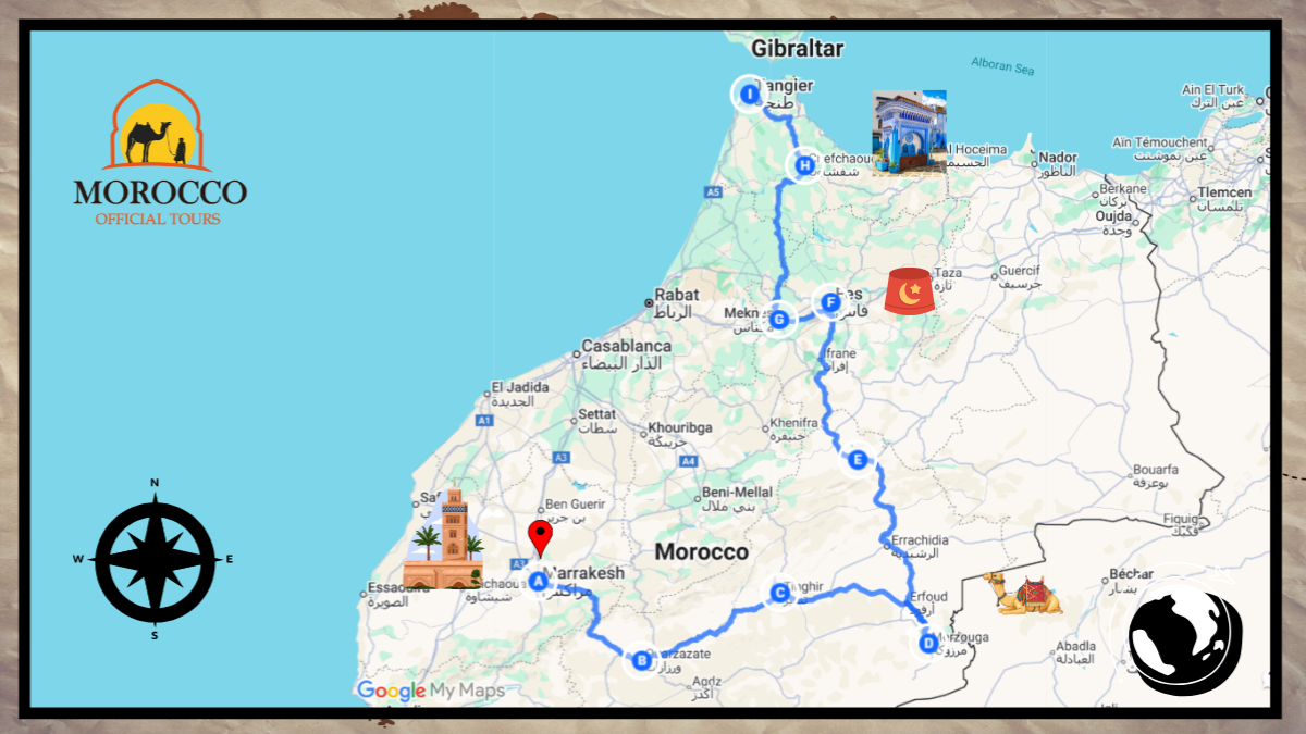 You will explore Tangier Chefchaouen Volubilis Meknes Fes Merzouga Desert Dades Valley Ouarzazate Ben Haddou and Marrakech.